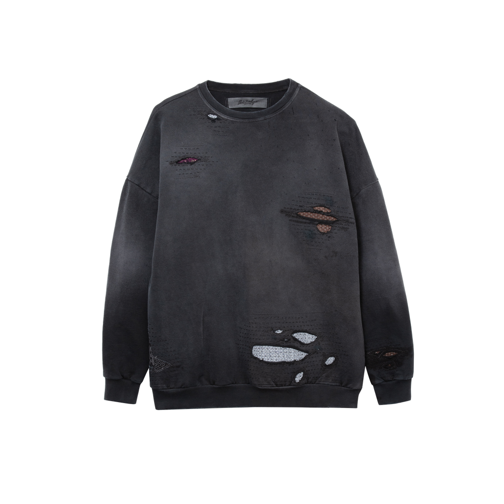HAND DYED BLACK LS T-SHIRT - RECONSTRUCTED MULTI TEE